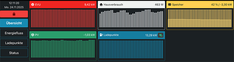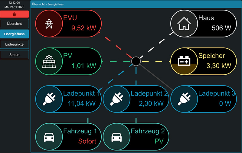 Da das openWB-EMS auf dem primary-Steuercontroller auch unendlich viele weitere openWB-Ladepunkte managen kann, erlaubt diese Einstellung entweder die Darstellung Aller Ladepunkte des Systems oder aber nur den der lokalen openWB auf dem Display der lokalen openWB. Insbesondere bei Ladeparks können damit auch übergreifende Ladevorgaben von lokalen openWB ausgeführt werden.