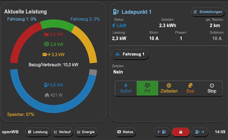 Es sind unterschiedliche Darstellungvorlagen (s.g. Themes) verfügbar, die nach individuellem Geschmack auswählbar sind. Aktuell sind dies Cards (openWB) und Colors (community).