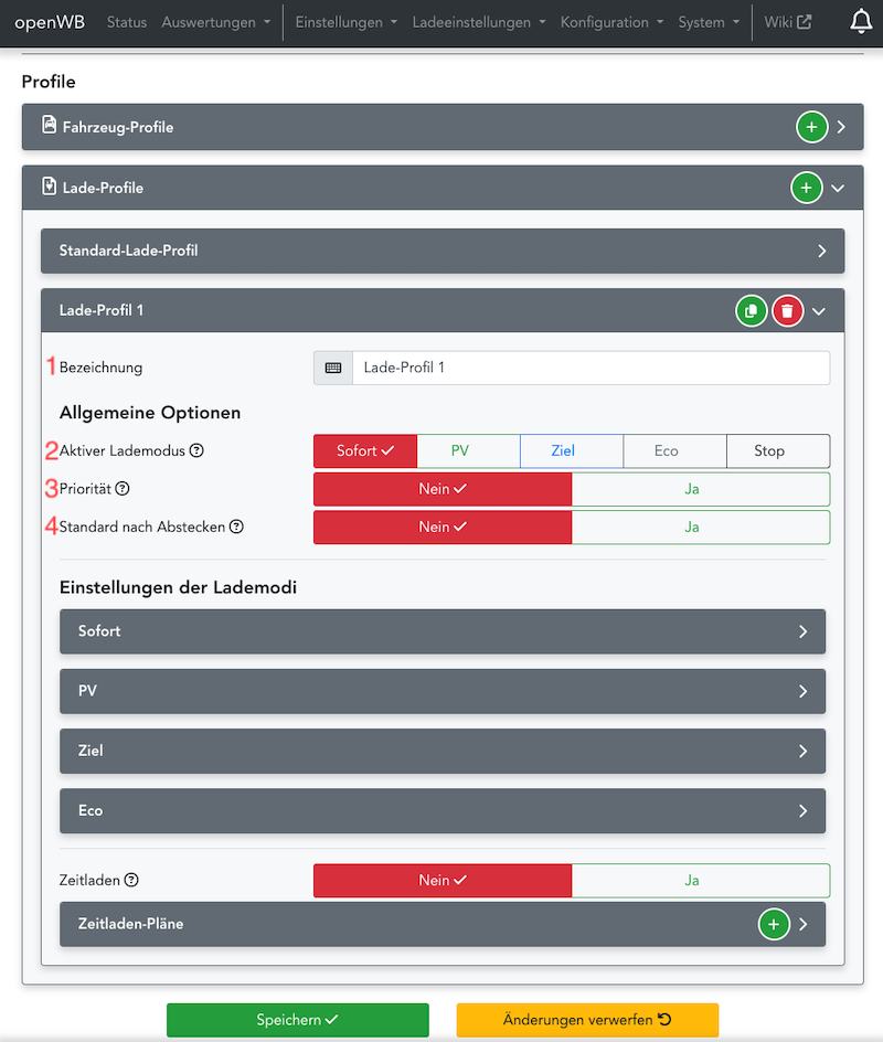 Konfiguration Lade-Profil
