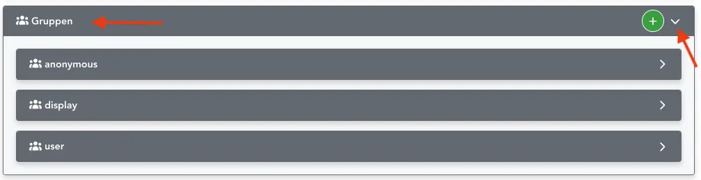 • Einige Gruppen sind bereits vordefiniert vom System angelegt. Diese System-Gruppen haben fest vordefinierte Rollen und können nicht angepasst/gelöscht werden.