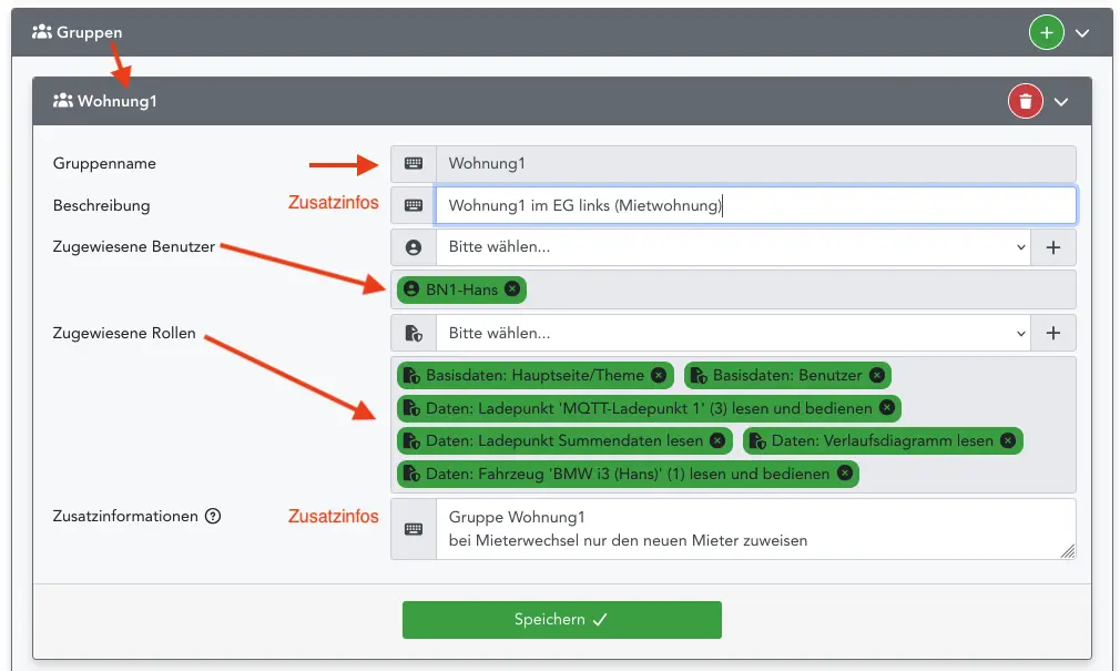 1. für jede Wohnung/Ladepunkt eine Gruppe mit passenden Rollen anlegen (=Lese-/Bedienrechte)